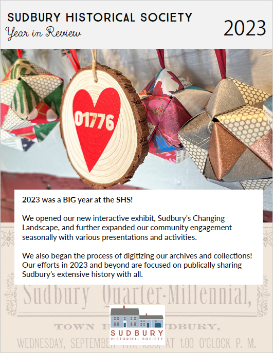 The Sudbury Historical Society publishes a newsletter distributed to our members twice a year. A selection of past newsletters is available below for your enjoyment.